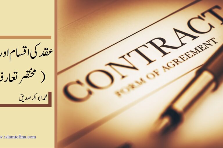 عقد کی اقسام اور شرائط ( مختصر تعارف ) محمد ابوبکر صدیق لیکچرر،انٹرنیشنل انسٹی ٹیوٹ آف اسلامک اکنامکس انٹر نیشنل اسلامک یونیورسٹی اسلام آباد 21 -02- 2021 …………………………….. یہ پوسٹ میں نے اسلامی مالیات کے محققین،  فقہ اسلامی کے طالب علموں اور ان احباب کے افہام  لئے مختصراً تحریر کی ہے جو اسلامی تجارتی احکام Read More