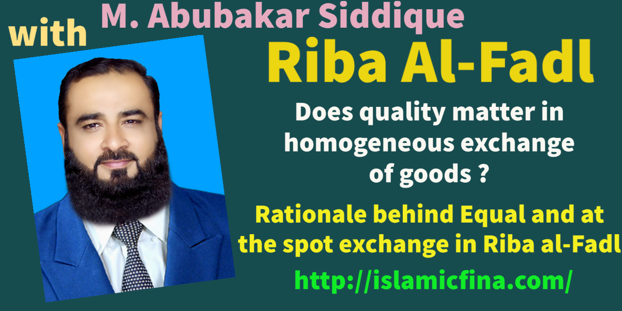 - Quality is standard less concept. It depends upon personal assessment. In real life sale and purchase, people usually make high quality goods low quality while buying and vice versa while selling. It was quite possible that people will open the door of riba, if quality determination is left on their will. They will start to exchange of goods changing their qualities according to their need of money etc. Example: Person A has high quality goods and Person B has low quality goods. Person A needs goods of B. Person B claims that his goods is of high quality and he will give him 4kg of his goods for 3kg of goods of person A. In this way Mr. B will exploit Mr. A.